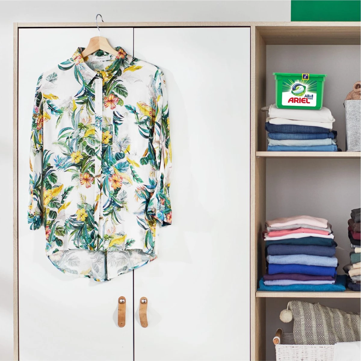 Ariel All in 1 wasmiddel pods voor een buitengewone reiniging met 1 pod. Ariel All in 1 pods is de nieuwe en verbeterde opvolger van Ariel 3 in 1 Pods. De wasmiddel pods: 1. Reinigen 2. Verwijderen vlekken 3. Maken kleding stralend 4. Frisse geur 5. Ontworpen voor koude water