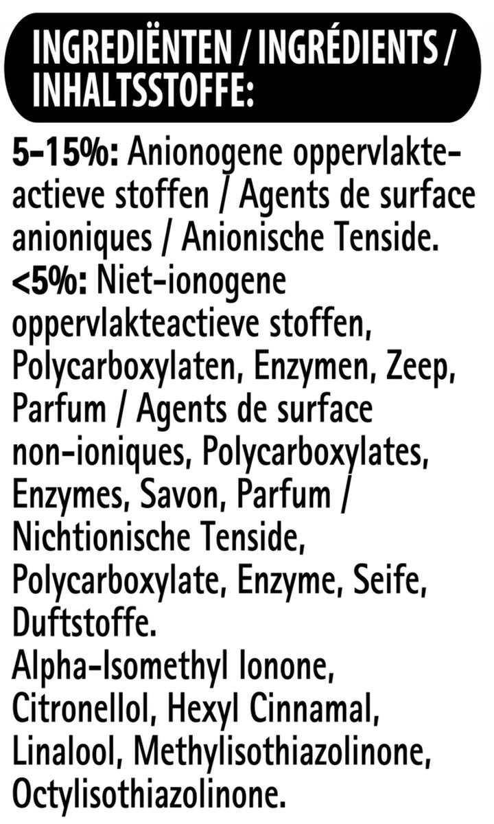 | Type wasmiddel | Hoofdwas |